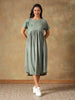 Crafted in breathable cotton, this Sage Green Cotton Chikankari Dress is designed for effortless everyday comfort. Featuring a relaxed silhouette with an empire waist and soft gathers, it offers a fluid, airy fit. Delicate hand-embroidered Chikankari, inspired by jamdani motifs add subtle elegance, while short sleeves and functional side pockets make it ideal for warm weather, long days, and travel.