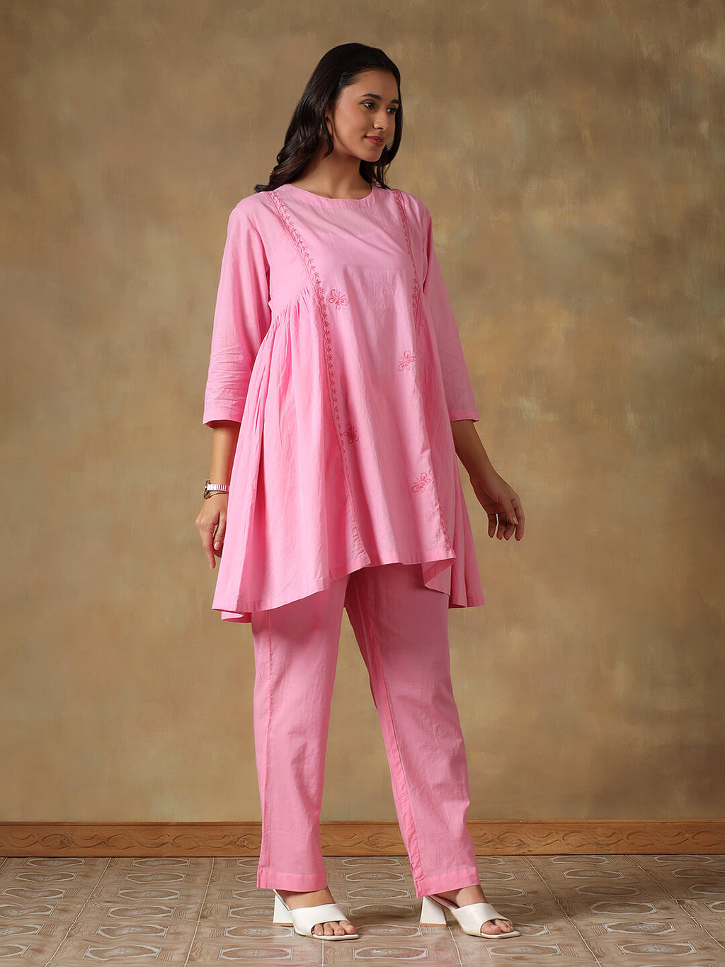 Pink Cotton Chikankari Co-ord Set