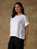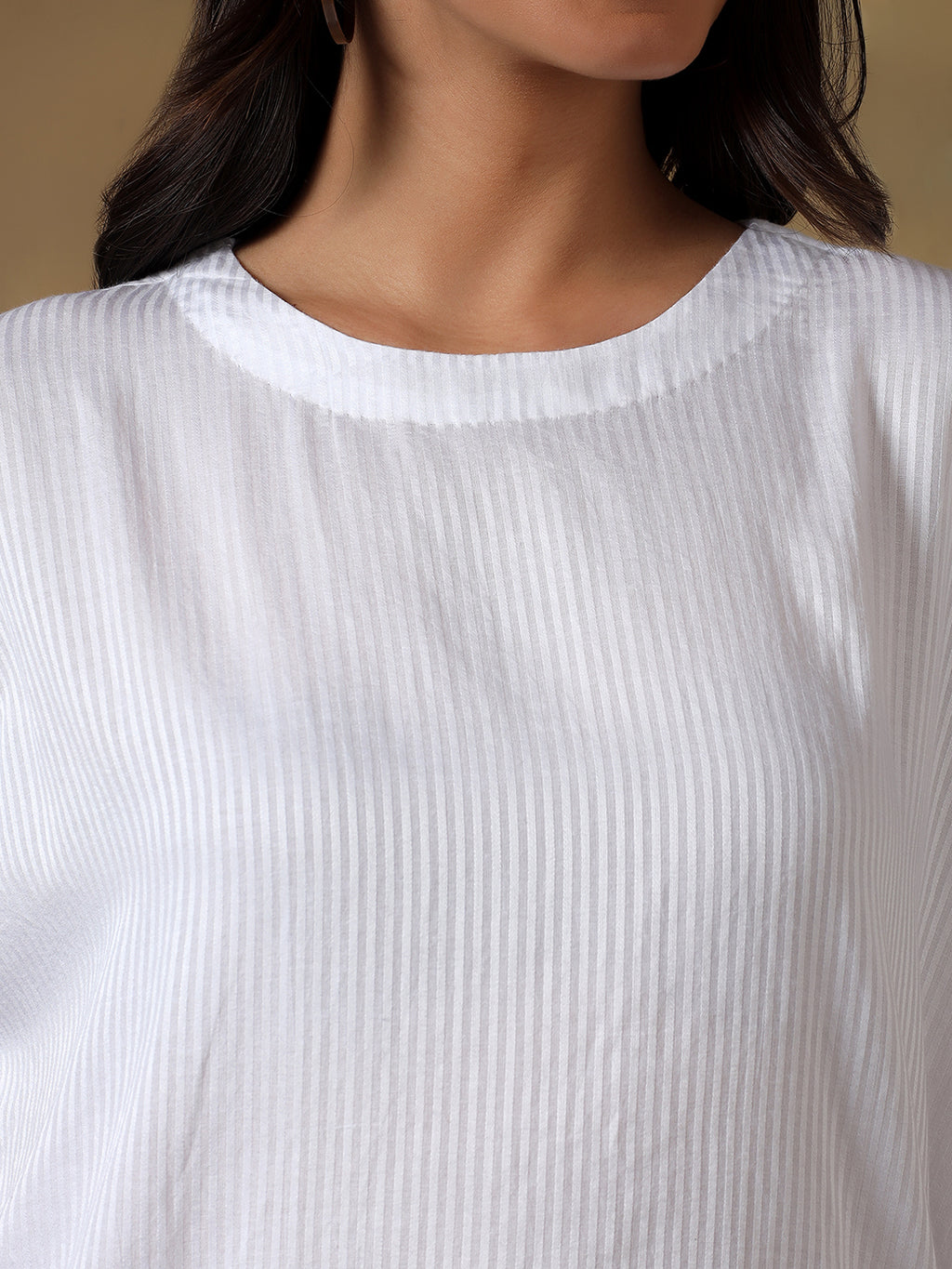 Crafted from breathable self-striped cotton, this Chikankari Top offers effortless comfort with a relaxed silhouette. Delicate hand-embroidered Chikankari detailing along the hem and back adds a subtle artisanal touch. Featuring short sleeves and an easy fit, it’s perfect for casual days, summer outings, and travel-ready styling.
