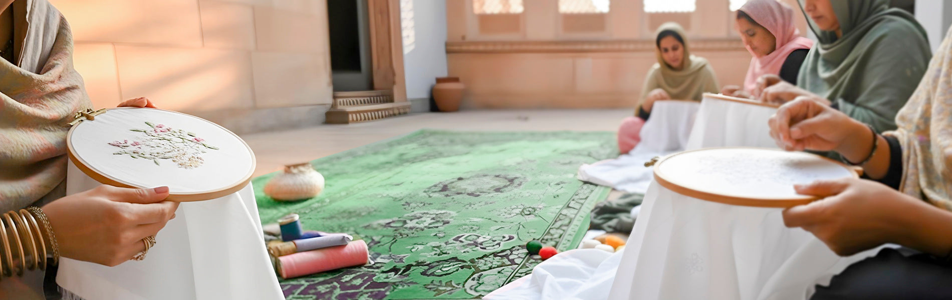 Our work begins in a village near Lucknow, Uttar Pradesh where Chikankari has been practised for generations. Over 300 women artisans work with us — each mastering stitches passed down from mother to daughter. From the airy lightness of Jaali to the raised texture of Murri and the elegance of Bakhiya. Their hands hold an entire heritage.For them, Chikankari is independence, identity, and pride. For us, they are the heart of Inara. Every time you bring home an Inara piece, you help keep this art,  and these stories  alive.